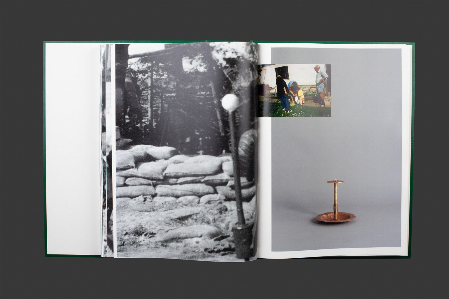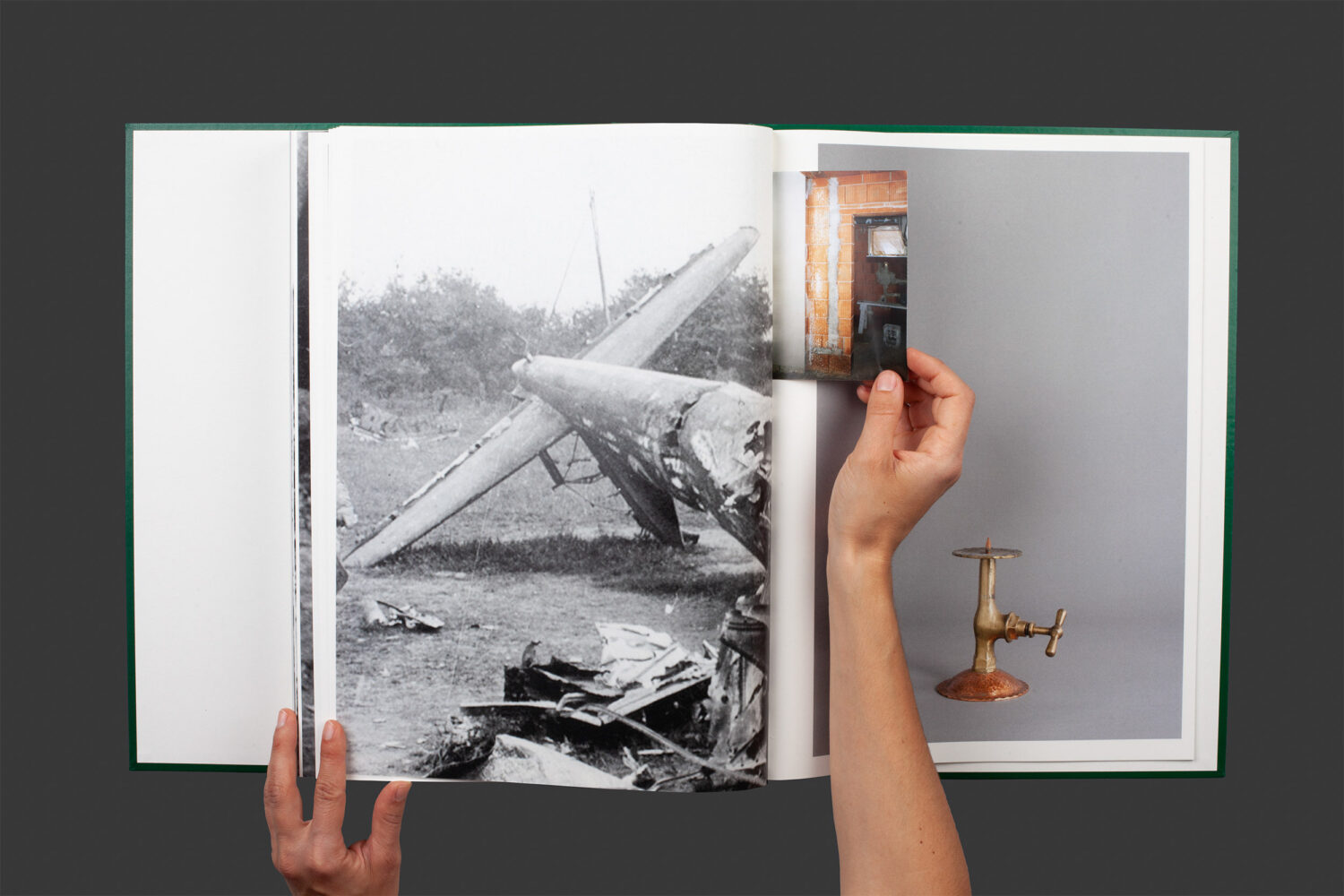 DIE AUFSTELLUNG thematisiert die Weitergabe von Traumata des 2. Weltkriegs im Wohnhaus meiner Familie. Ausgangspunkt ist ein Archiv von 550 Metallobjekten, die mein Großvater, ein ehemaliger Wehrmachtssoldat, über mehrere Jahrzehnte im Keller unseres gemeinsamen Wohnhauses fertigte. Die Objekte werden in der handwerklichen Routine zu Trägern des Traumas. Um den Einfluss der unausgesprochenen Kriegserlebnisse auf den Familienalltag zu zeigen, setze ich die Metallgegenstände sowohl mit Kriegsfotografien als auch Familienfotos ins Verhältnis, die Ausschnitte aus dem Alltag meiner Familie bis in die frühen 2000er Jahre zeigen. Die Kriegsfotografien und Objekte nehmen dabei jeweils nacheinander eine ganze Seite ein. Durch Einlegeblätter werden die Objekte von den wesentlich kleineren Familienfotos, die durch ihre geringere Größe an Fotoabzüge aus Familienfotoalben erinnern, überlagert und mit dem Kriegsmaterial konfrontiert. Dort wo das Verstehen aufhört, beginnt das Sehen. Die Fotografien und Schichtungen stellen für mich den Versuch eines analytischen Blicks auf das Material dar. Ich arbeite seit 2018 mit dem beschriebenem Material. 2019 habe ich im Kunstraum Ortloff Leipzig die 550 Objekte als einer Installation ausgestellt. Für mich war eine fotografische Dokumentation des Materials und die Übertragung in eine Buchform schnell zwingend, um mich analytisch an das Material heranzutasten. Für meine Diplomarbeit im Herbst 2020 konzipierte ich das Künstler:innenbuch DIE AUFSTELLUNG. Im Herbst 2022 zeige ich eine Weiterentwicklung der Installation und des Künstler:innenbuchs im Europäischen Künstlerhaus Oberbayern in einer Einzelausstellung. Ich begreife meine künstlerische Arbeit als Selbstbefragung und -verortung. Dabei arbeite ich vor allem in den Medien Fotografie und Text. In meinen Arbeiten, die von den Techniken der Montage und filmischen Denken geprägt sind, beziehe ich mich auf filmische und literarische Erzählweisen, die ich sowohl künstlerisch als auch kuratorisch befrage. In DIE AUFSTELLUNG stelle ich in der Assemblage von gefunden und fotografierten Archivmaterialien eine fortlaufende Erzählung in Buchform her, die um Prosatext erweitert ist und meine eigene Herkunft befragt. Vom Bühnenbild kommend und mit der Wirkung und Inszenierung von Räumen vertraut, lege ich großen Wert auf die räumliche Darstellung der Arbeiten. Das dialogische und kollektive Arbeiten ist ein wichtiger Teil meiner Praxis. Ich arbeite gemeinsam mit anderen Künstler:innen, wie zuletzt mit Lucia Graf für die gemeinsame Arbeit Room with a sink, in der wir anhand der Protagonist:innen A und B die Themen Berührung, Kommunikation und Nähe verhandeln. Ich bin Teil des Kurator:innenkollektivs des Kunstverein Leipzig.