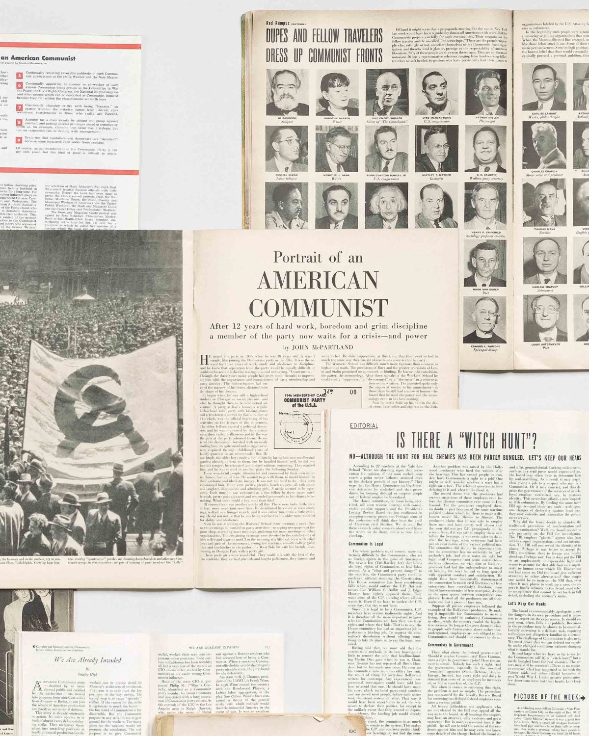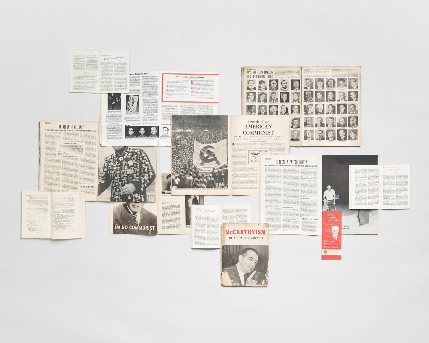 Die Arbeit »Are you now or have you ever been« befasst sich mit den Aktivitäten des sogenannten »House Un-American Activities Committee« und der Verfolgung vermeintlicher Kommunisten innerhalb der Filmindustrie Hollywoods nach dem Zweiten Weltkrieg. Nach dem Ende des Ersten Weltkriegs befürchtete die Regierung der USA eine Unterwanderung der amerikanischen Gesellschaft durch Anhänger des deutschen Nationalsozialismus und europäischer Kommunisten. 1937 wurde ein Ausschuss namens »House Un-American Activities Committee« (HUAC) gegründet, um die vermutete Bedrohung zu untersuchen. Das Komitee hatte den Auftrag, Auskünfte darüber einzuholen, wie ausländische subversive Propaganda in die USA kam und durch wen sie Verbreitung fand. Der Ausschuss griff hart gegen Mitglieder der Bürgerrechtsbewegungen und Gewerkschafter durch, die im Verdacht standen, Kommunisten zu sein. Auch deutsche politische Flüchtlinge wie Thomas Mann und Bertolt Brecht wurden vorgeladen und vom Komitee über ihre mutmaßlichen antiamerikanischen Verbindungen verhört. Am Ende der 1940er-Jahre richtete das Komitee seine Aufmerksamkeit auf die vermutete kommunistische Propaganda aus den Reihen der Hollywood-Studios. Umfangreiche Recherchen in Archiven und Institutionen sowie die Auseinandersetzung mit historischen Ereignissen sind für meine künstlerische Arbeitsweise von großer Bedeutung. Für die Arbeit »Are you now or have you ever been« begab ich mich 2018 und 2019 auf zwei Recherchereisen nach Los Angeles in lokale Archive und Institutionen in Kalifornien. Dabei wurden Orte, die im Zuge der Anhörungen des »HUAC« von Bedeutung waren, von mir aufgesucht und dokumentiert. Hierzu zählen ehemalige Standorte der Filmproduktionsfirmen, Regierungsgebäude oder Orte, die unmittelbar mit den Ereignissen in Verbindung standen, wie zum Beispiel das Haus von Bertolt Brecht in Santa Monica. Einen weiteren Teil der Arbeit bilden die arrangierten Stillleben, die Gegenstände zeigen, die im Zusammenhang mit den Vorgängen und Geschehnissen rund um die Verhöre konnotiert sind. Als zentrales Element der Arbeit dient ein Tableau, das mehrere Ausgaben zeitgenössischer Publikationen aus den 1940er und 1950er-Jahren zeigt und dem Betrachter Einblicke in die propagandistische Medienberichterstattung der damaligen Zeit gibt. Die Präsentation der Arbeit im Januar 2020 in der Villa Merkel in Esslingen am Neckar beinhaltete zusätzlich eine Audioinstallation, die Ausschnitte aus Bertolt Brechts Anhörung vor dem Ermittlungsausschuss in Schleife abspielte und somit das ausgestellte Fotomaterial weiter kontextualisierte. Zuletzt wurden Teile der Arbeit im Zuge des Kunstpreis »junger westen 21« in der Kunsthalle Recklinghausen vorgestellt.