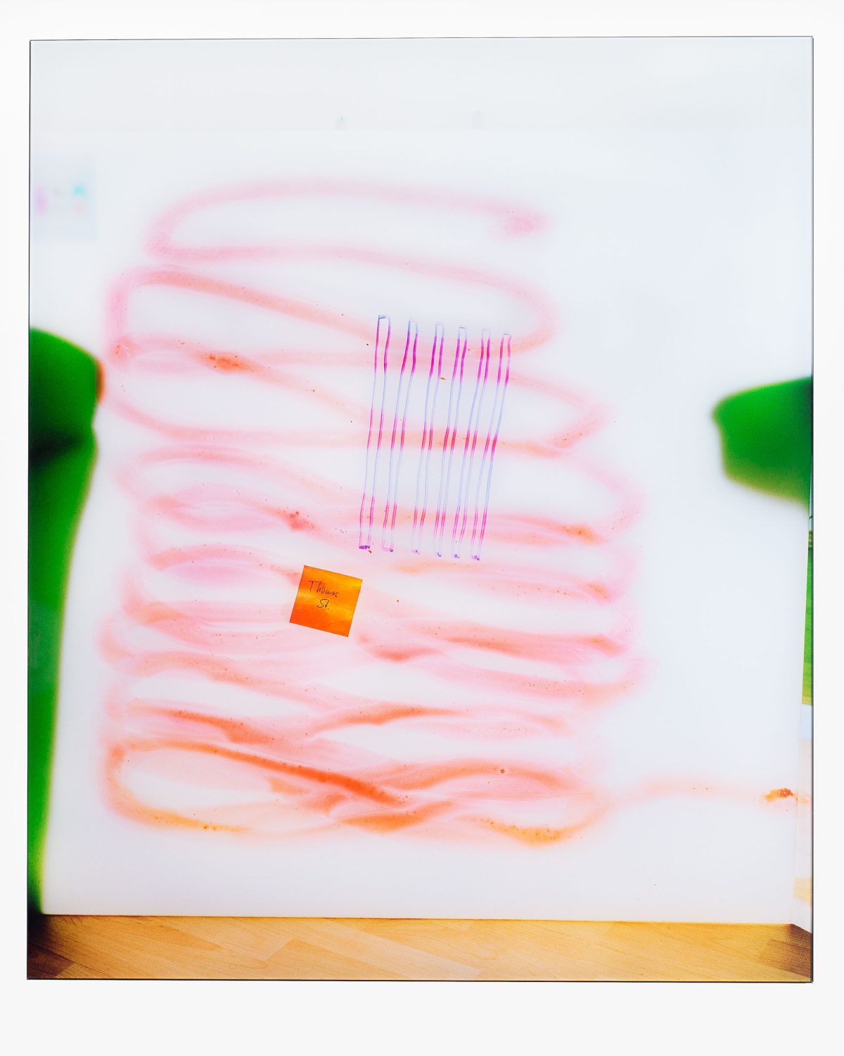 Die Serie »decisive gesture« beschäftigt sich mit dem analogen fotografischen Abbild als Ab- und Eindruck zum selben Zeitpunkt. Die Korrelation Bild und Bildträger wird ausgelotet – Zeichnung und Fotografie werden miteinander verbunden, mechanische Reproduktion und persönliche Geste des Künstlers vermischen sich. Der Prozess der »taktilen Fotografie« ist die Manifestation einer verkörperten Wahrnehmung, die durch das »muskuläre Gedächtnis« auf dem Bildträger definiert wird. Dieser absichtliche und doch unvorhersehbare Prozess der Bildproduktion offenbart das In-Kommunikation-Sein der menschlichen Erfahrung in seiner Banalität. Die Arbeiten schaffen einen psychologischen Raum zwischen gelebter Erfahrung, Wahrnehmung und fotografischer Darstellung. Ausgehend von sozialen und geopolitischen Aspekten menschlicher Interaktionen mit ihrer Umwelt erarbeitet der Künstler ortsspezifische Beziehungen durch die taktilen Möglichkeiten des analogen Mediums. Die Fotografien verhandeln wie weit Abbild und Wahrnehmung auseinanderklaffen.