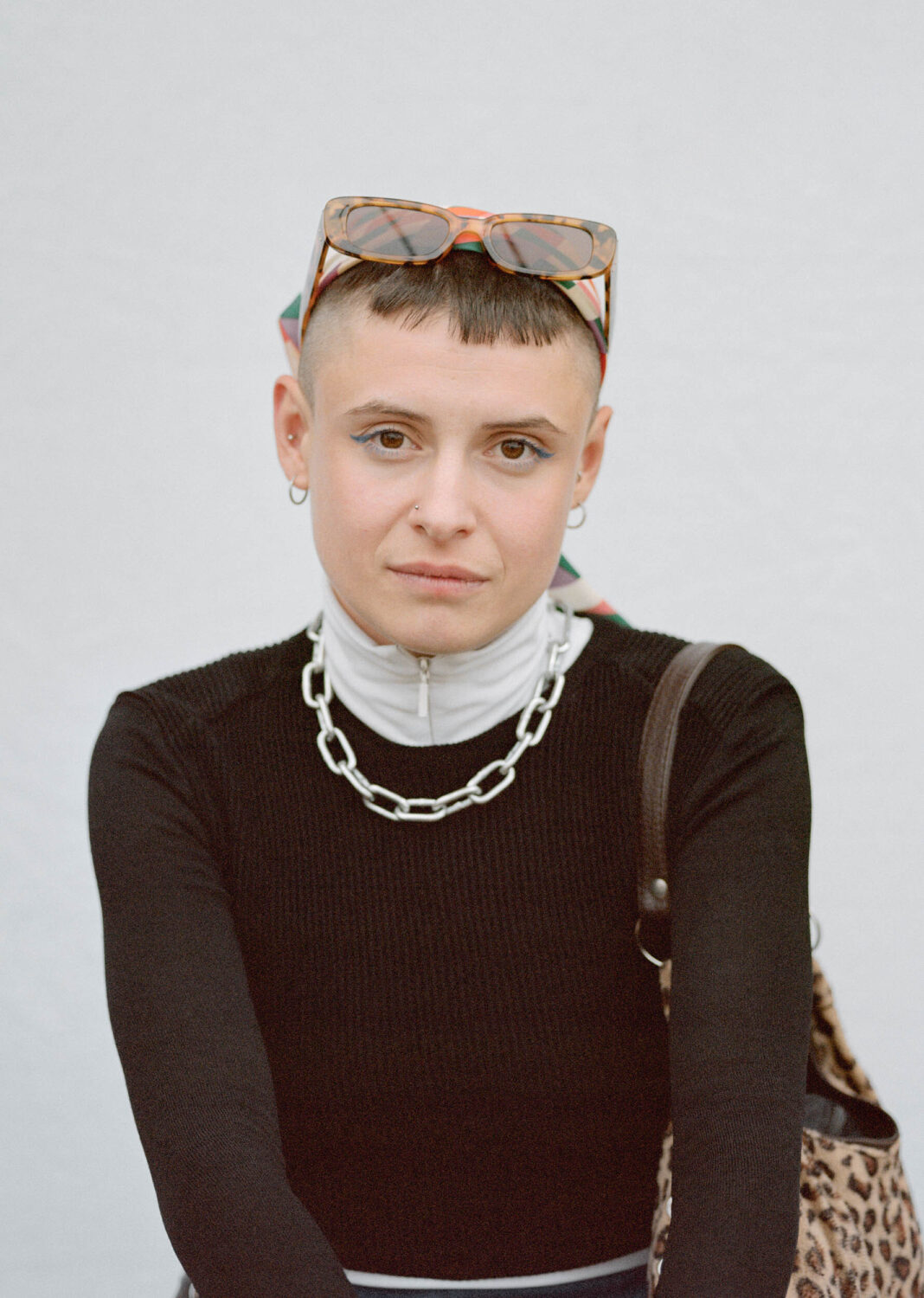 Als ich aufgehört habe Alkohol zu trinken, bin ich auch nicht mehr tanzen gegangen. Zumindest nicht mehr so, wie ich es gewohnt war: betrunken und bis in den Morgen! 2018 war ich für ein Semester in Südkorea und habe dort als Teil der Szene in Clubs fotografiert. Etwas, das in Berlin unvorstellbar ist. Um meinen Perspektivenwechsel von drinnen nach draußen, von rauschig zu nüchtern, zu untermalen, ging ich mit einer analogen Pentax 645 Mittelformatkamera, abgelaufenen Farbfilmen und einem mobilen Studio los und fing an, die Frauen und Männer am Ausgang der Berliner Clubs sonntagmorgens zu porträtieren. Die Wahl der analogen Technik verlieh den Begegnungen eine besondere Ruhe, während der weiße oder schwarze Hintergrund half, den Fokus auf die Persönlichkeit zu lenken. Beim Ansprechen meiner Protagonist:innen wusste ich, wie sie sich fühlen. Ich kenne den emotionalen Zustand völliger Erschöpfung und den Übergangsmoment vom Ende einer Nacht zum neuen Tag. In meiner Motivauswahl suche ich nach Spuren, die die Persönlichkeit hervorheben, wie z.B. einem Tattoo mit dem Schriftzug »I’m sorry Mom« oder einem in der Nacht entstandenen Knutschfleck am Hals.